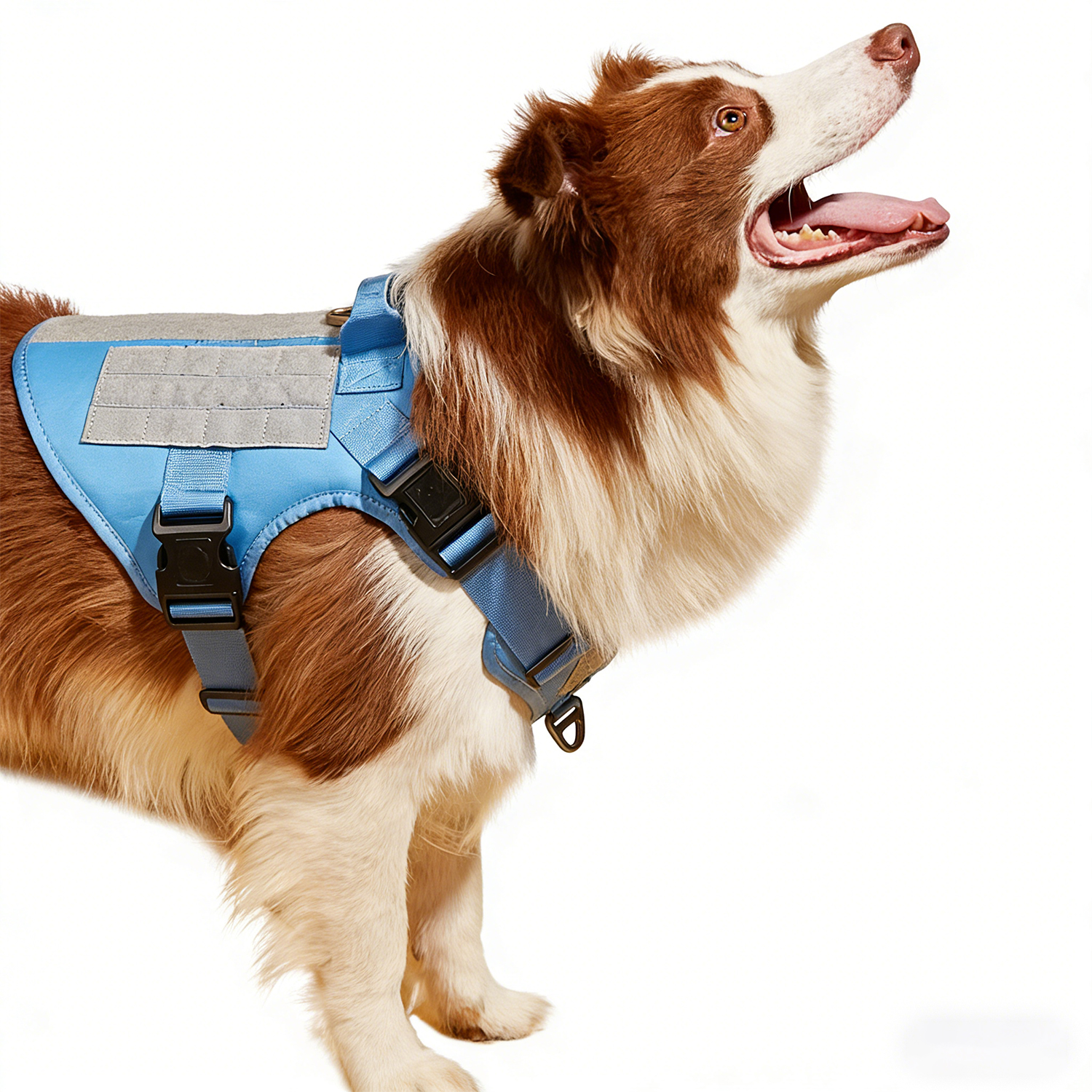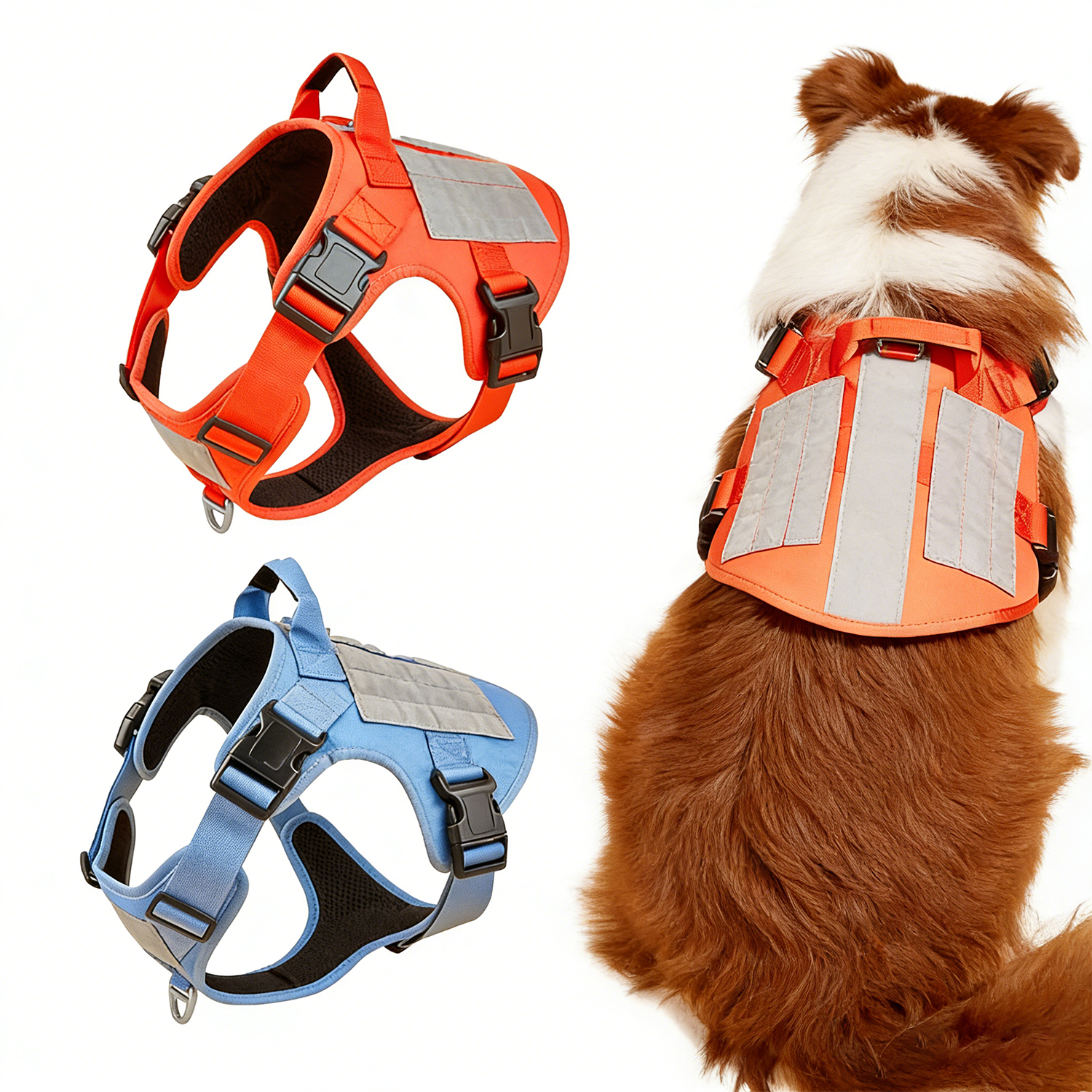 This adjustable dog club vest is designed for sniffer and tactical training. Made from bright Oxford fabric, it features a chest and back pack harness system, ensuring visibility and comfort during intensive outdoor search and detection exercises.