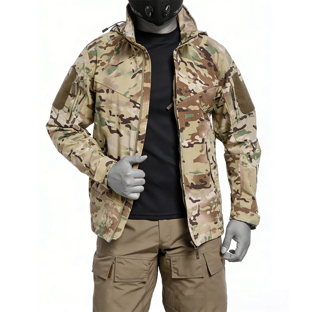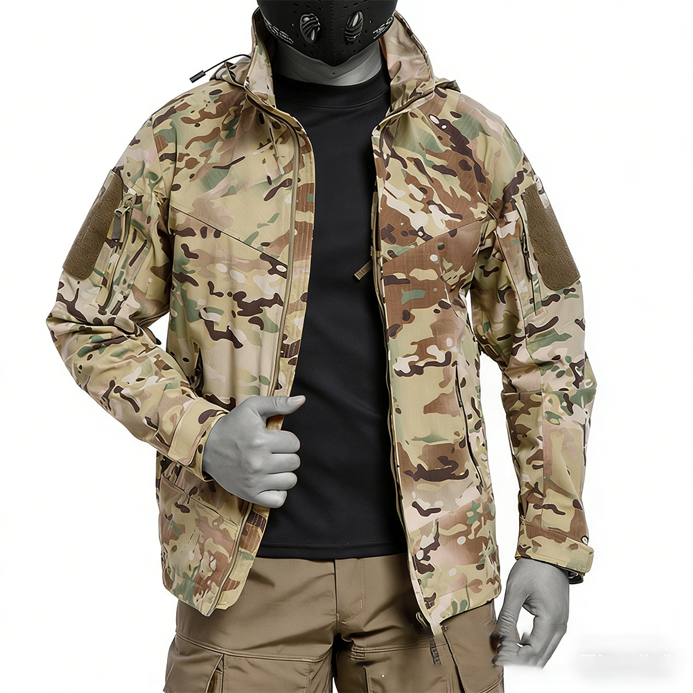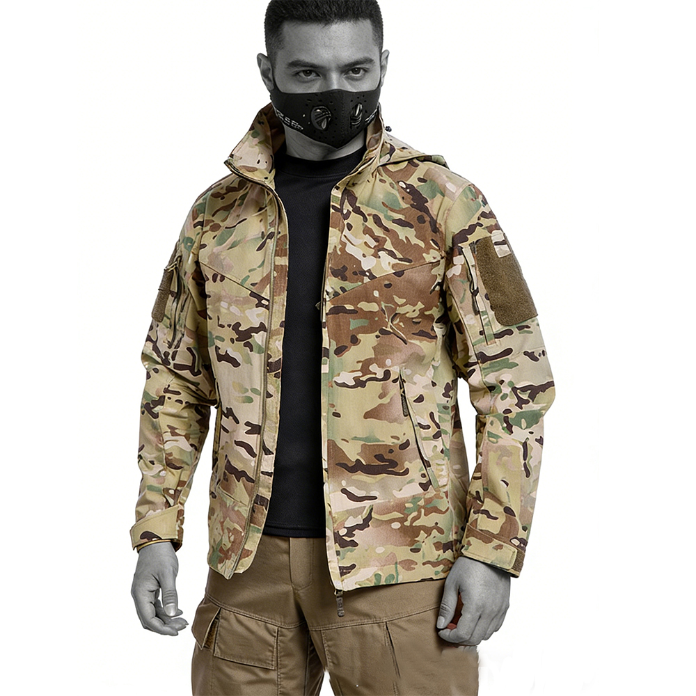 This tactical soft shell jacket combines wear-resistant construction with breathable waterproof protection, ideal for autumn and winter outdoor use. Featuring a camouflage design and durable fabric, it offers comfort and mobility during field training, hiking, and tactical operations. The coat-style design ensures versatility for both rugged activities and everyday wear in variable weather.
