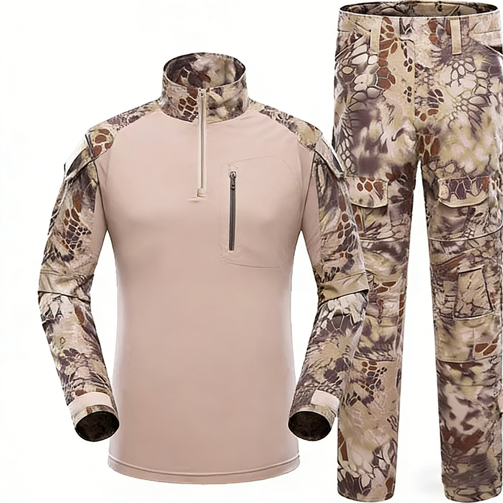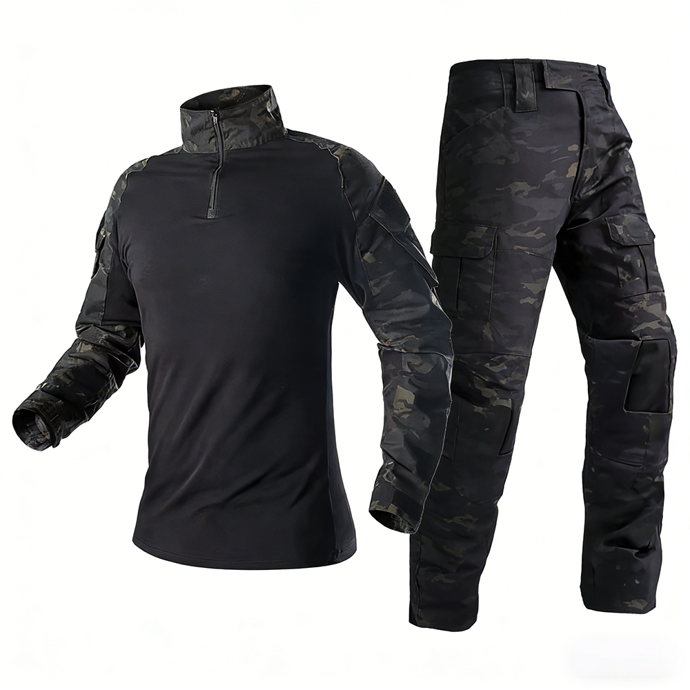 The G2 ripstop tactical suit is crafted with durable A-tacs camouflage fabric, designed for rugged outdoor and tactical operations. Featuring reinforced construction and strategic ventilation, it balances breathability with resilience, even without integrated knee brace equipment. Ideal for field training, hunting, and extended missions, this uniform delivers lightweight performance and reliable concealment in diverse environments.
