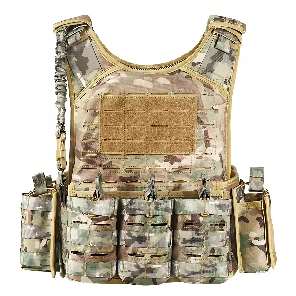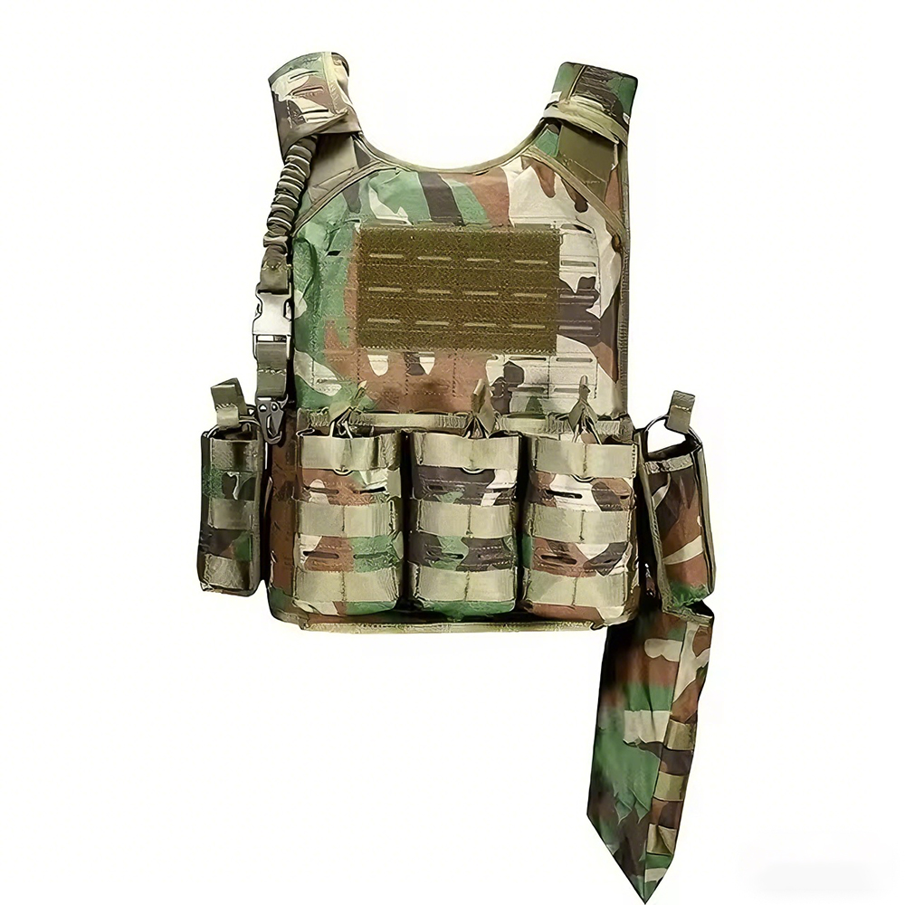 Designed for dynamic tactical simulations and outdoor paintball operations, this camouflage tactical vest combines practical functionality with rugged durability. Crafted from high-density, tear-resistant fabric, it features an extensive MOLLE webbing system across the front, back, and shoulders, allowing modular attachment of pouches, holsters, and gear. The adjustable side straps and shoulder padding ensure a secure, comfortable fit for extended wear, while the breathable mesh lining enhances ventilation during intense activity. Compatible with standard training plates, this vest provides realistic weight distribution and tactical readiness for scenario-based drills. Ideal for paintball, airsoft, military training, and outdoor role-play, it offers versatile load-carrying capacity without sacrificing mobility or concealment in woodland and field environments.