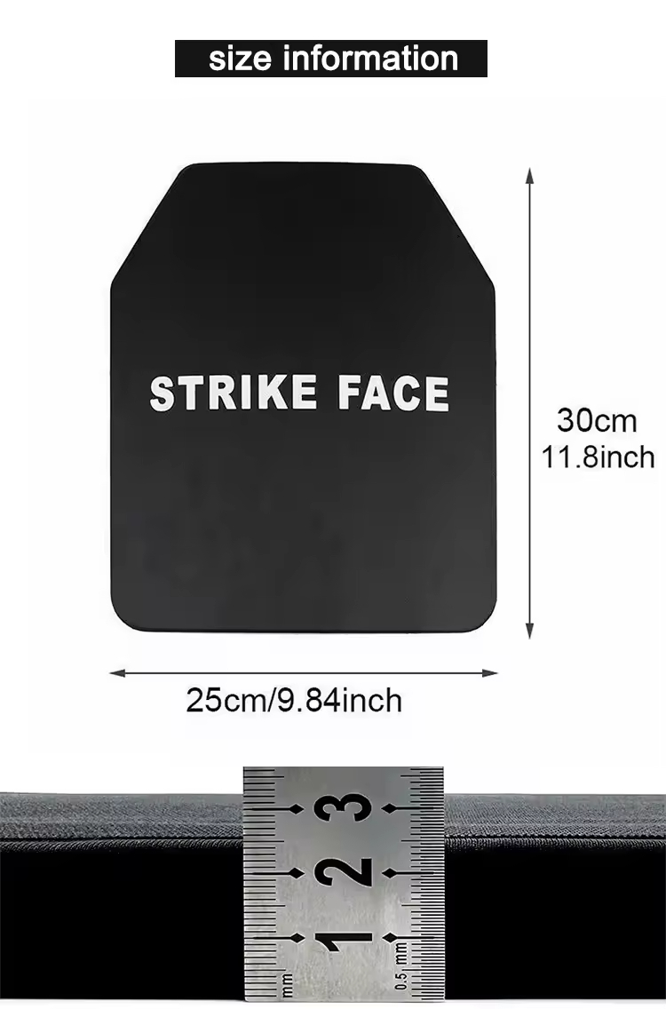 The Tactical Vest Plate 11×14 Ballistic Plate is made from UHMWPE, offering high protection with adjustable sizing to fit most users. It supports customized logos and colors, weighs between 0.5-2.5kg depending on size, and ensures versatility for tactical, training, or sports use. The product is ISO9001, BSCI, and SEDEX certified, ensuring compliance with international quality standards and enhancing market access.