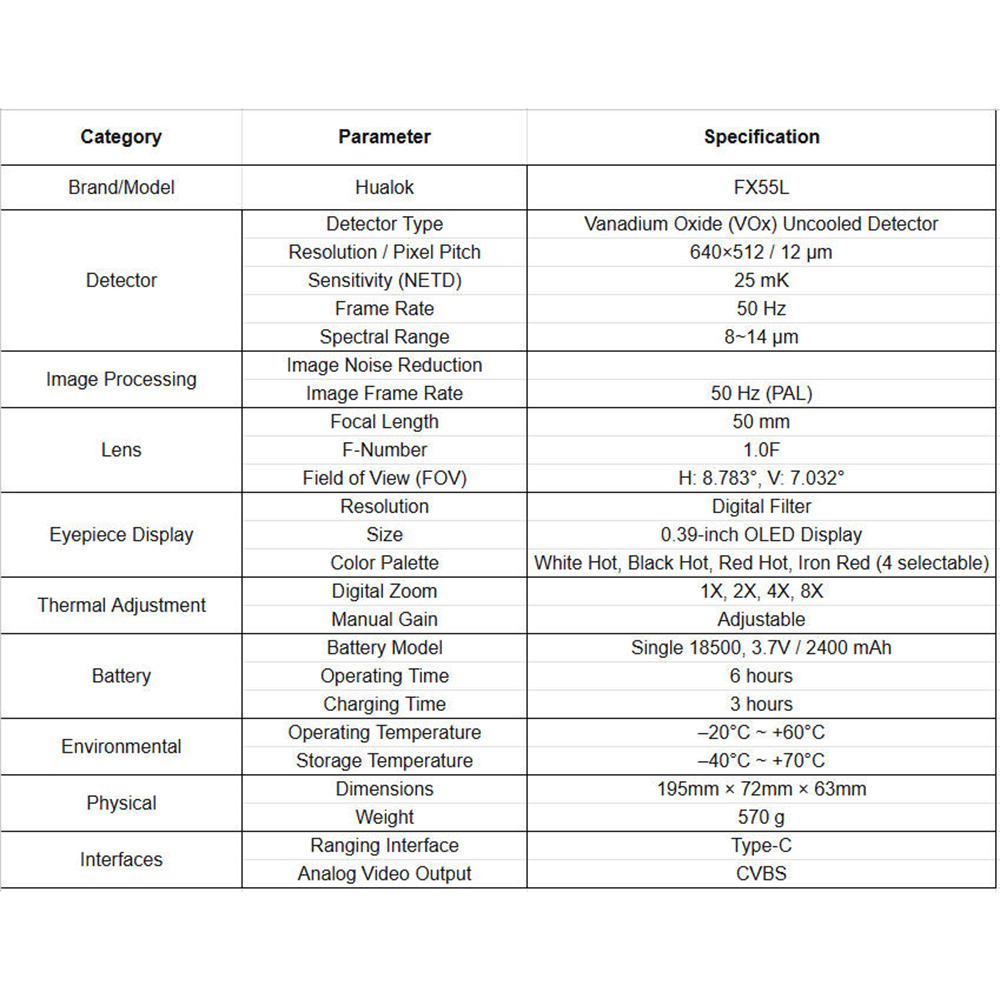 The FX55L thermal imaging system incorporates a cutting-edge New Single-channel Algorithm, significantly enhancing signal processing efficiency while reducing noise and improving target clarity in complex environments. Its innovative Upper Focus Adjustment Structure allows for swift and precise manual focusing from the top-mounted control, ensuring optimal sharpness and ease of operation even during dynamic field use. Furthermore, the system features AI Super-resolution Image Enhancement, which intelligently reconstructs and refines thermal imagery in real-time, delivering exceptionally detailed visuals with enhanced contrast and definition—effectively extending detection range and improving recognition accuracy in both day and night operations.