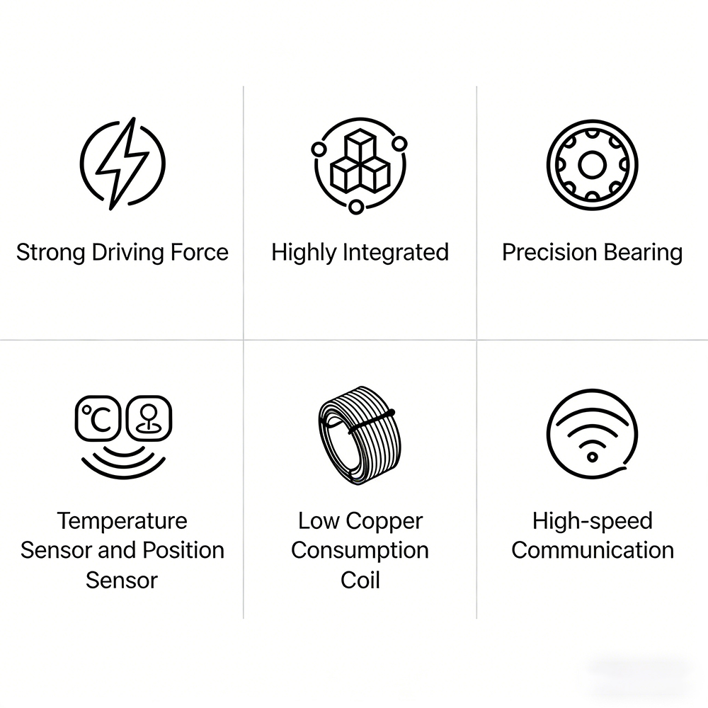 The motor is perfectly matched to the reduction. It has a built-in FOC control algorithm, a built-in temperature sensor and an absolution value encoder.