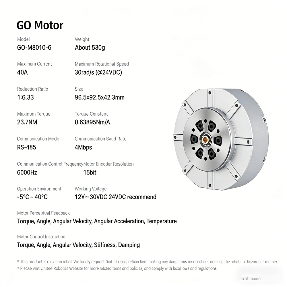 The GO-M8010-6 permanent magnet synchronous motor is designed for high-performance robots and provides a strong driving force with a high level of integration.