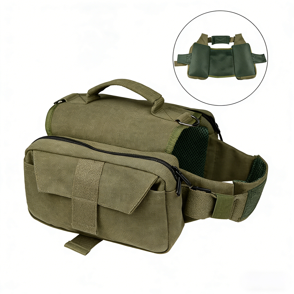 This heavy-duty tactical vest for medium to large hunting dogs is built with a secure saddle harness and integrated carrier pouches. Designed for outdoor endurance, it enables dogs to carry their own gear during hiking, hunting, and long walking expeditions, combining functionality with canine comfort and safety.