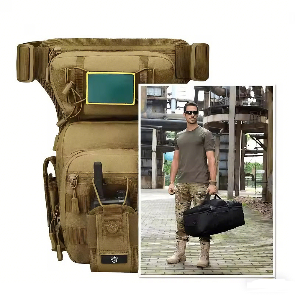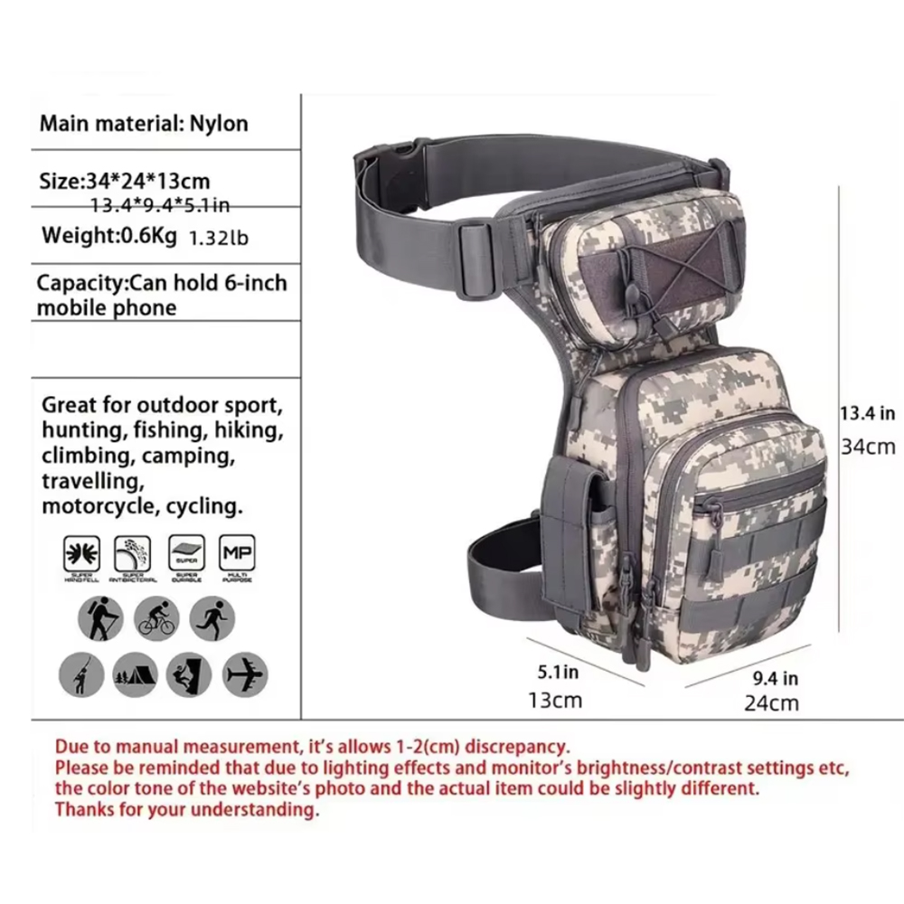 High-quality nylon tactical drop leg bag with customizable logo, fabric, and design. Suitable for sports activities like running, climbing, and hiking. Durable and versatile for various outdoor uses.