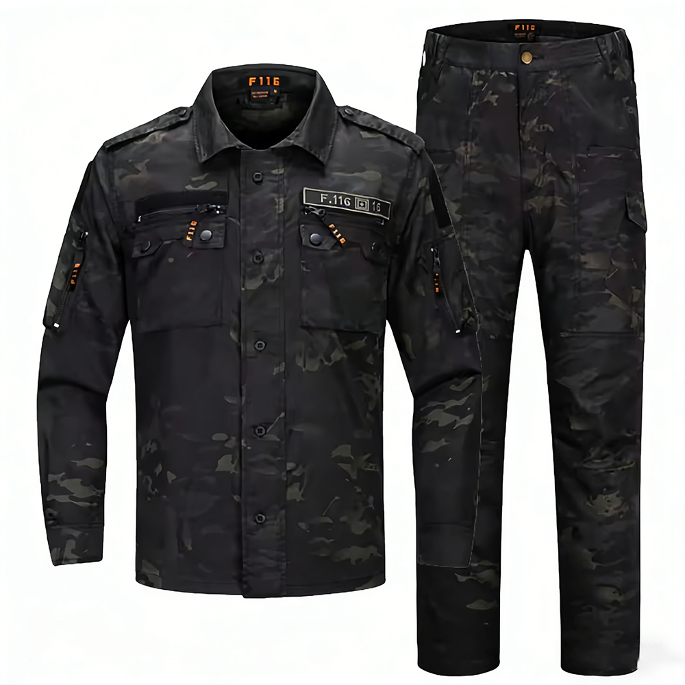This wholesale men’s tactical camouflage suit combines lightweight durability with long-sleeve versatility for outdoor performance. Crafted from breathable rip-stop fabric, it ensures comfort during extended wear in varied conditions, making it ideal for tactical training, hunting, hiking, and field operations. Designed with reinforced seams and a functional cut, it supports mobility and equipment integration while maintaining a professional, all-terrain appearance.