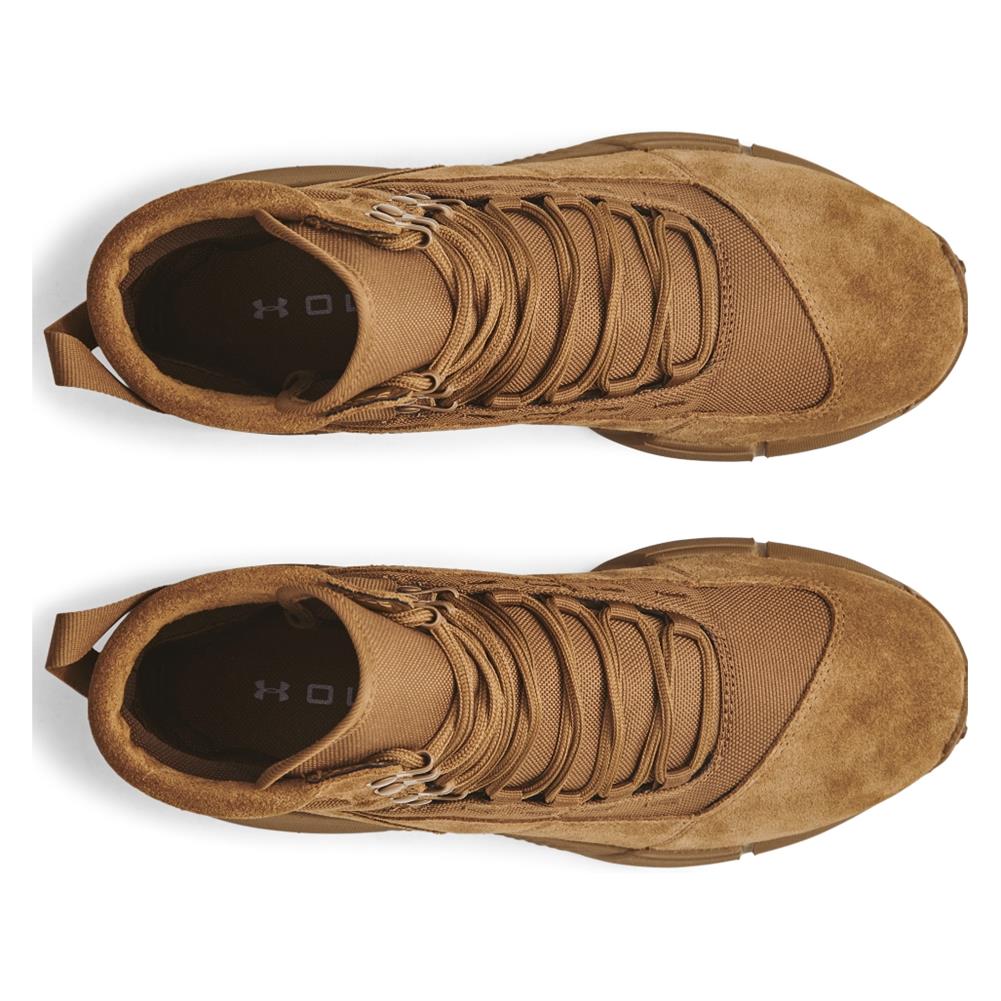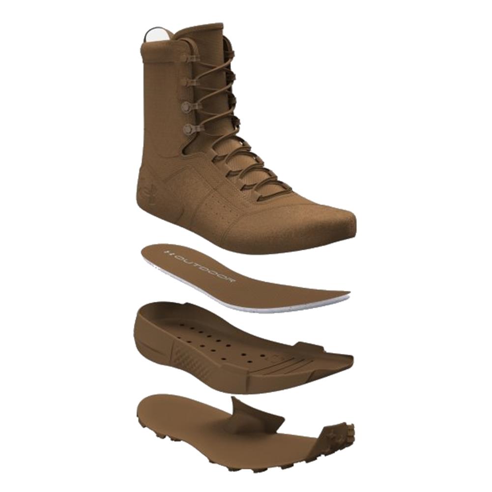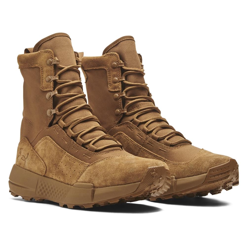 The Under Armour Charged Loadout Boots provide a strategic advantage in the toughest conditions. With a full-grain leather and nylon upper, these boots are built to last. The Vibram Litebase TC4+ outsole with multidirectional lugs ensures reliable traction and grip on virtually any terrain. A specialized textured arch excels on ladders and fast-roping. In addition, the molded Ortholite PU footbed and full-length Charged Cushioning midsole offer top-notch shock-absorbing comfort. Speed lacing eyelets and back pull loops help you get in and out of them with ease. Plus, these boots are Army and Air Force compliant, making them authorized for wear with Operational Camouflage (OCP) uniform. No matter the assignment, these boots are up for any challenge.
