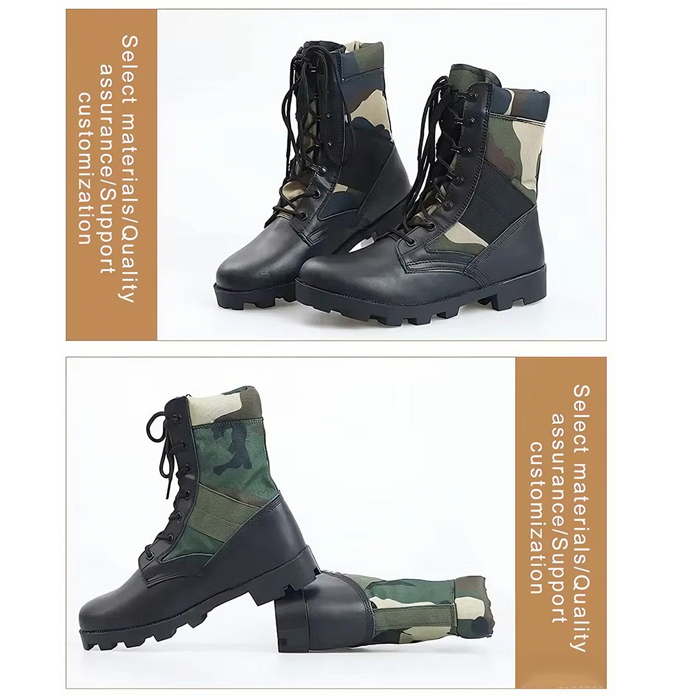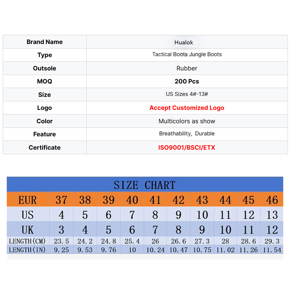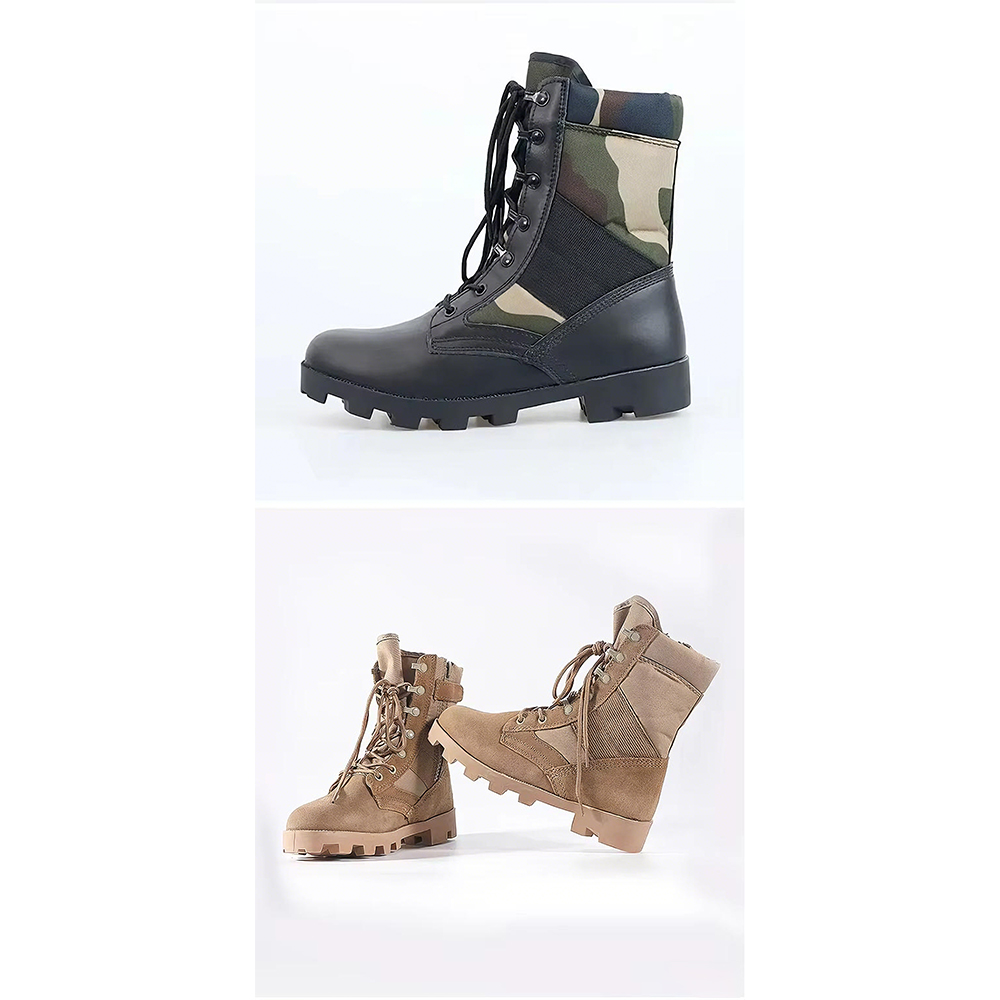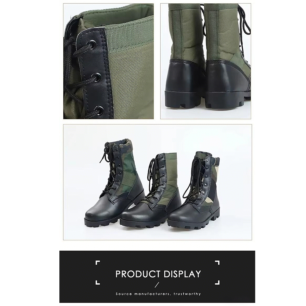 Durable tactical boots made from leather and oxford fabric with a rubber sole, offering breathability, water resistance, and anti-slip features. Customizable logos and colors are supported, ideal for outdoor activities like climbing and training. Available in US sizes 4#-13#. ISO9001/BSCI/ETX certifications ensure compliance with international quality standards, providing buyers confidence in product reliability and market access.