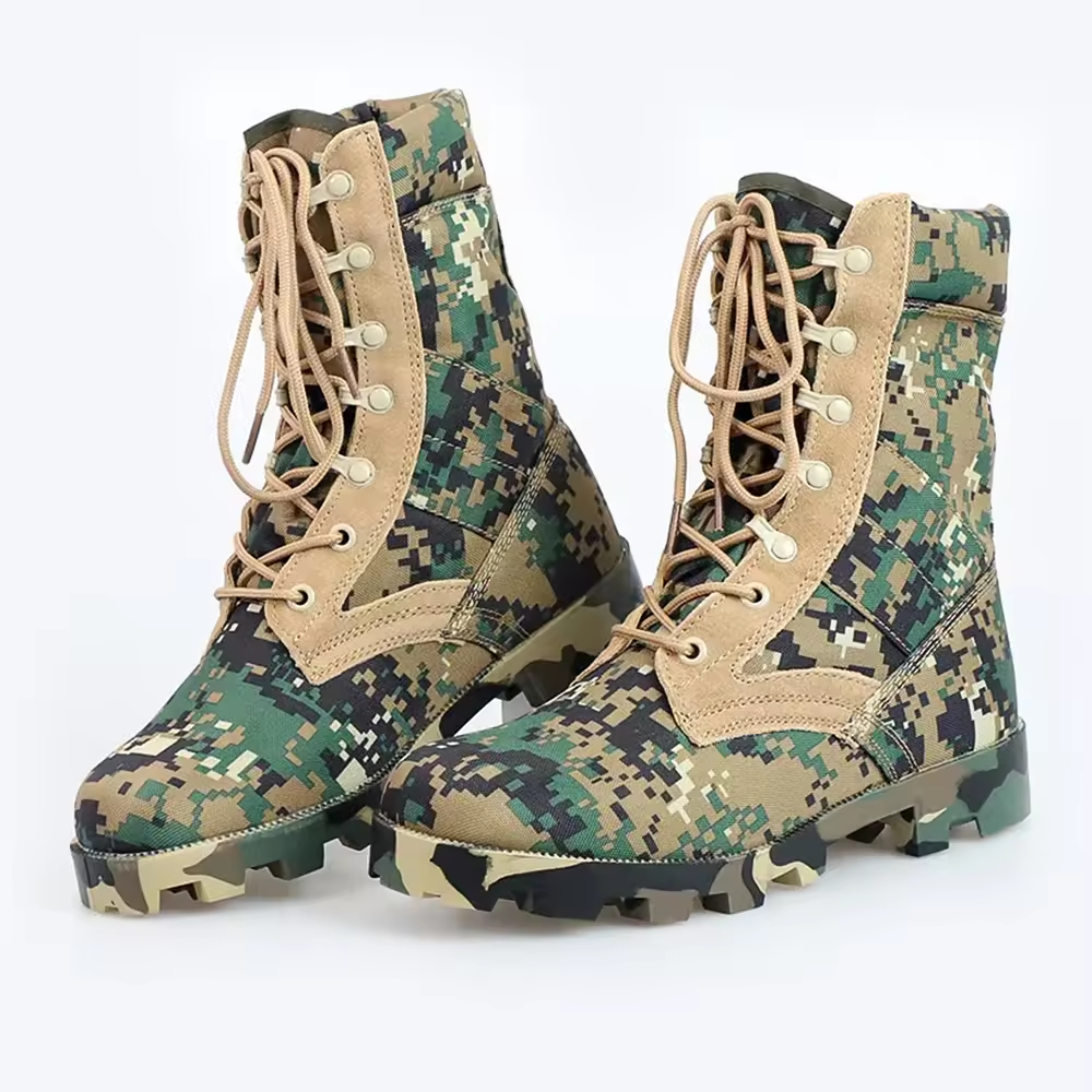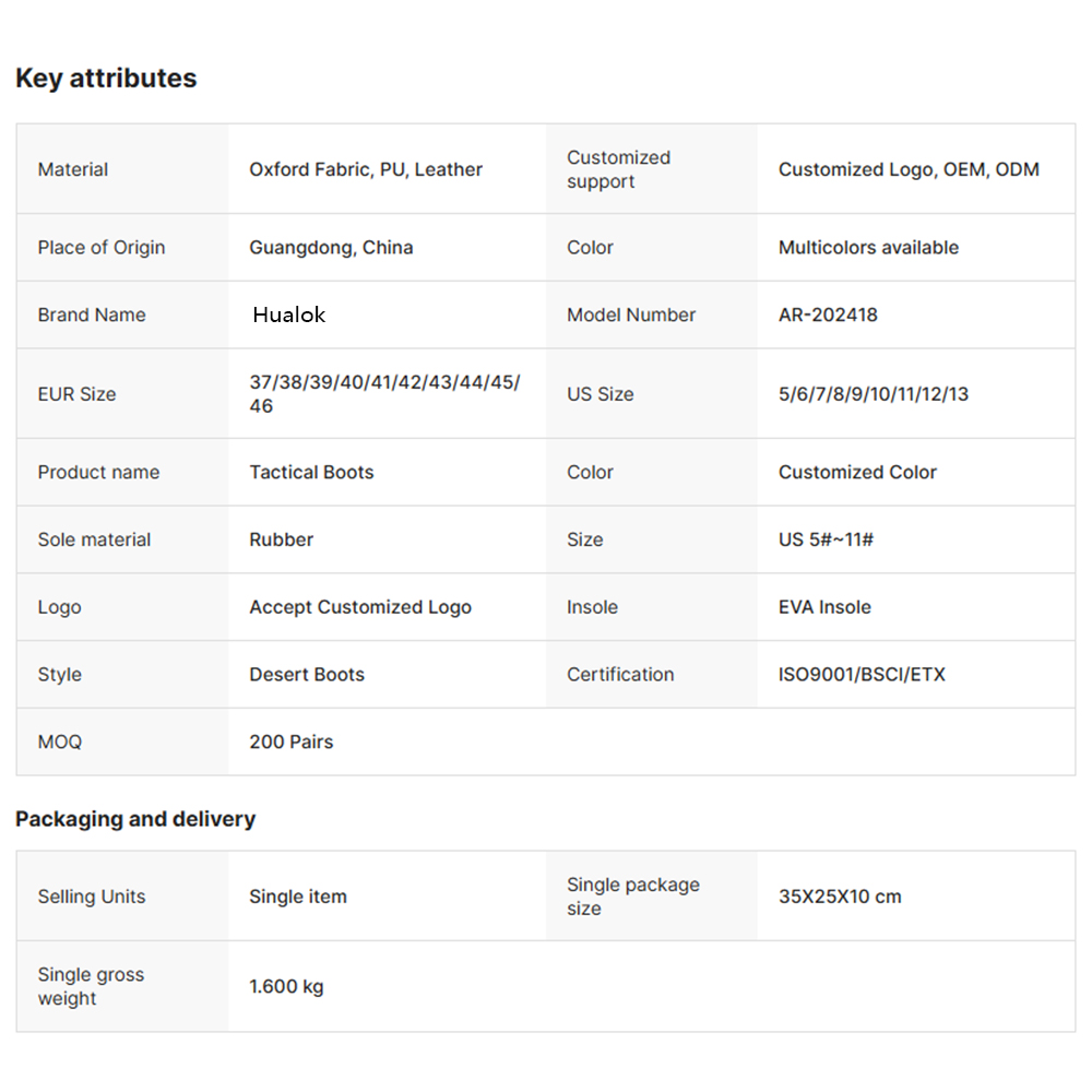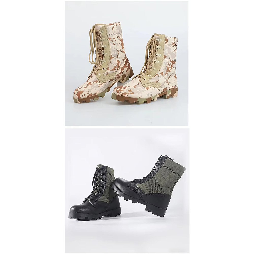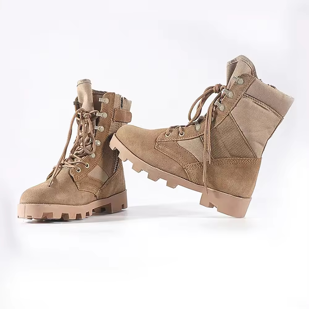 Durable tactical boots made from leather and oxford fabric with a rubber sole, offering breathability, water resistance, and anti-slip features. Customizable logos and colors are supported, ideal for outdoor activities like climbing and training. Available in US sizes 4#-13#. ISO9001/BSCI/ETX certifications ensure compliance with international quality standards, providing buyers confidence in product reliability and market access.