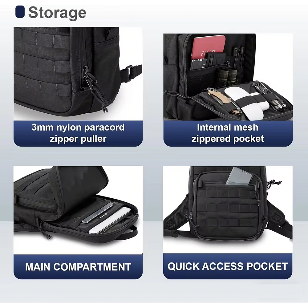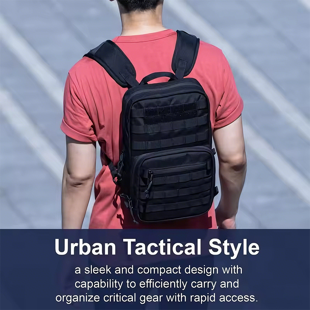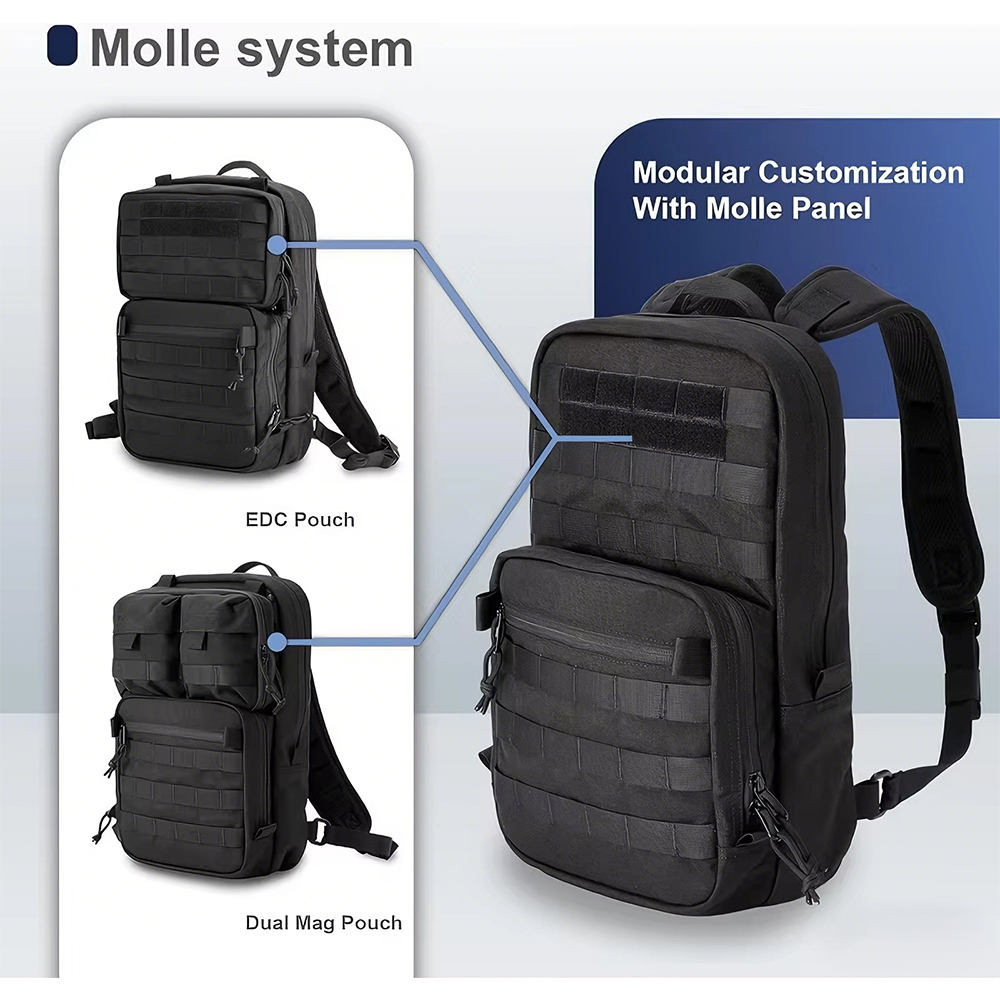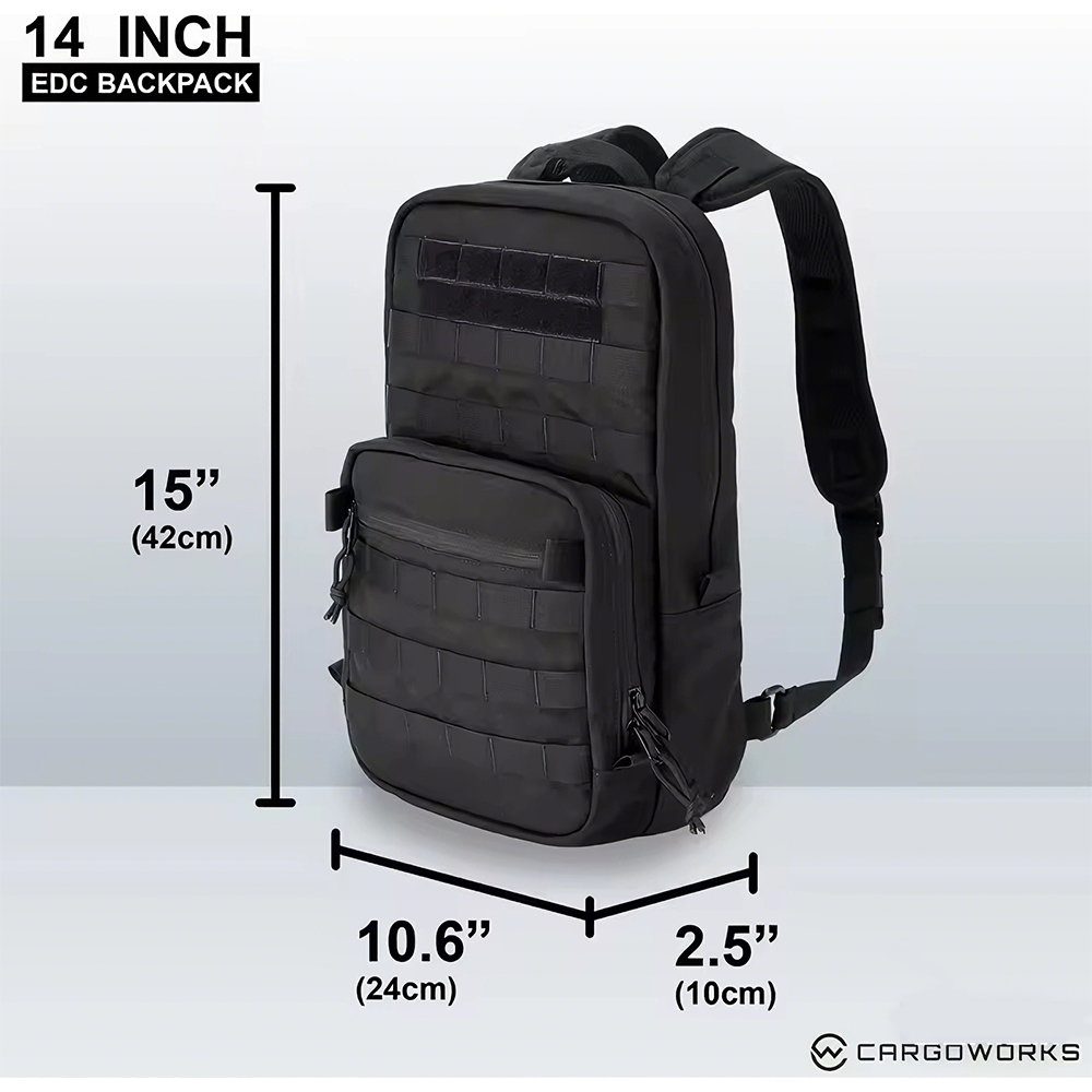 Adjustable straps, 14″ EDC capacity, MOLLE compatible