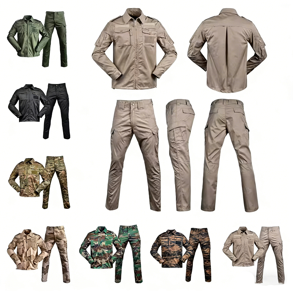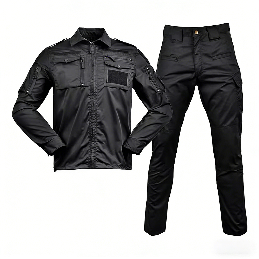 These tactical long sleeve security guard officer uniforms are designed for high-intensity professional and training scenarios. The set includes a camouflage combat top and matching pants, constructed from durable, breathable fabric that ensures comfort during extended wear. Featuring reinforced stitching and multiple utility pockets, the uniform offers both practicality and a commanding presence. Ideal for security operations, outdoor sports, and combat training, its camouflage pattern enhances concealment in various environments. The ergonomic design allows for unrestricted movement, making it perfect for dynamic situations. This suit combines functionality with a rugged aesthetic, meeting the demands of law enforcement, security personnel, and tactical enthusiasts alike.