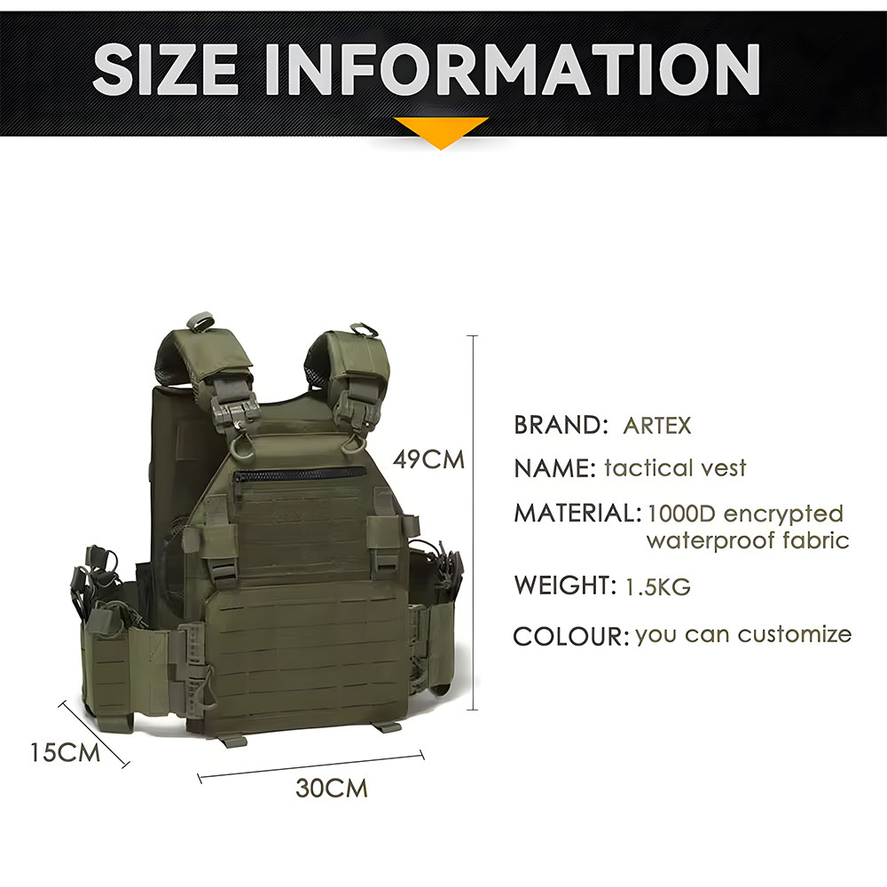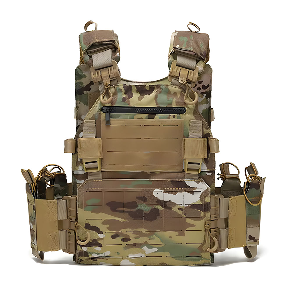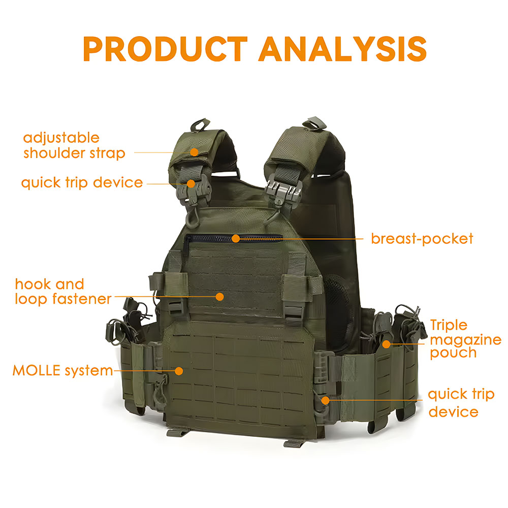 Featuring comprehensive MOLLE/PALS webbing across its surface, the vest allows complete customization of tactical accessories and pouches. Adjustable shoulder and waist straps ensure a secure, ergonomic fit for various body types. Designed to accommodate standard armor plates, this carrier is ideal for training, security details, and outdoor expeditions.