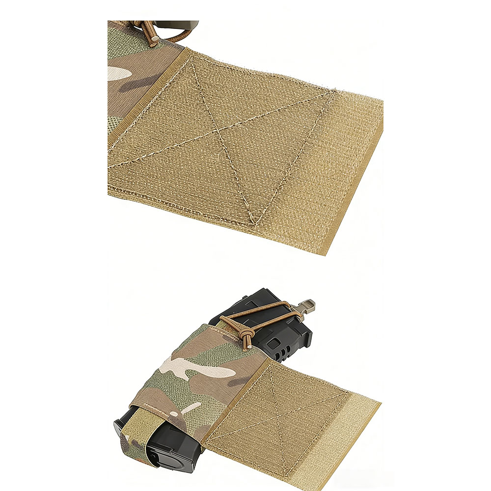 The Tactical Vest Wingman V2 is an elastic equipment holder designed in the Ferro-style for modular adaptability and secure field performance. Constructed with high-tension elastic webbing and reinforced nylon, it accommodates radios, 5.56mm magazines, and compact tools with a firm yet accessible grip. Compatible with FCPC V5 and most MOLLE/PALS platforms, it attaches laterally to tactical vests as a streamlined side pack, optimizing load distribution without hindering mobility. Ideal for hunting, airsoft, and professional operations, this pouch ensures organized, rapid-access gear management in dynamic environments while maintaining a low-profile, durable design for sustained use.